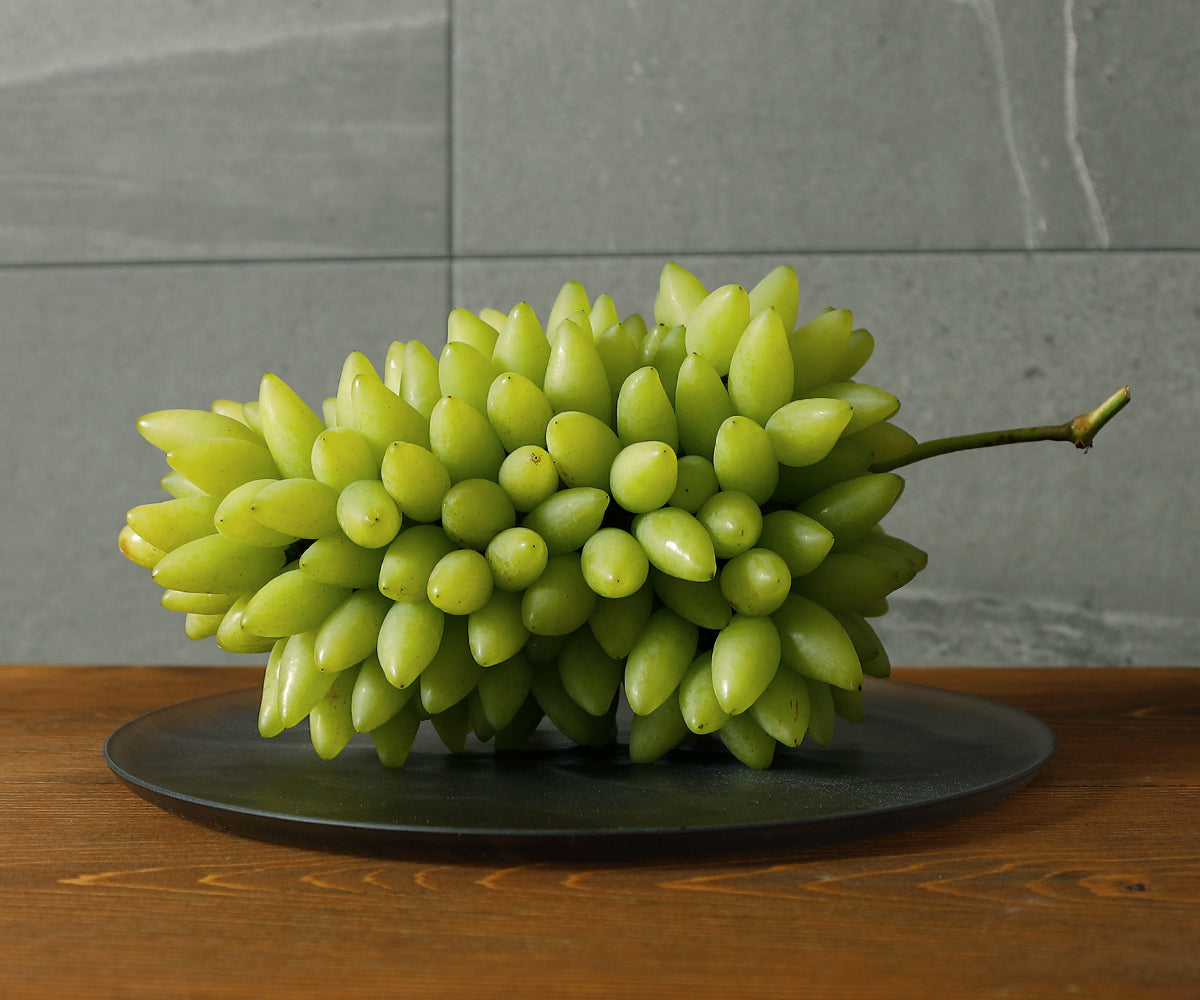 果皮は緑黄色で、果粒の重さは10~15gくらい。糖度は18~20度ほどと高く、酸味は控えめです。しまりのある果肉は果汁が豊富で、マスカットの芳香を持ちます。また、果皮が薄くてやわらかく、皮ごと食べられるのも特徴の1つ。パリッとした歯ごたえで、ジューシーで上品な甘みと高貴な香りが楽しめます。
